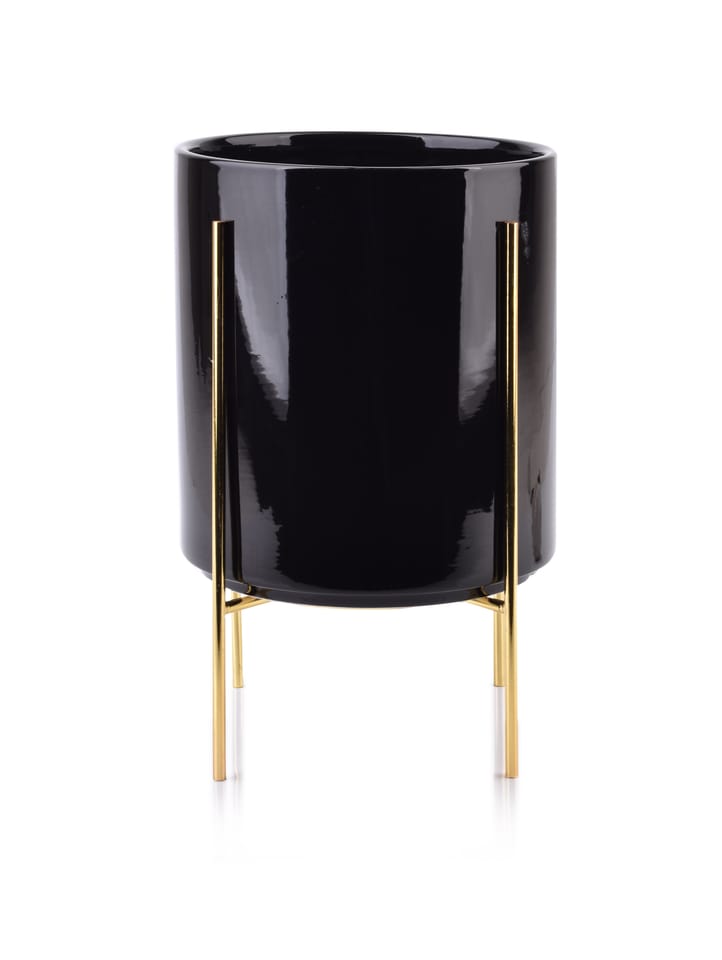 Ceramiczna osłonka na stojaku z serii NEVA marki MONDEX. Osłonka w stylu bardzo eleganckim, ale równocześnie posiadająca prostą formę pasującą do wielu stylizacji. Stojak dodaje efektu glamour. Doniczka wygodnie wkłada się i wyjmuje ze stojaka. Złoty stojak doniczki dzięki wyjątkowej technice aplikacji koloru sprawia, że staje się ona wyjątkowo dekoracyjna. Dzięki zastosowaniu takiego rodzaju malowania produkt możemy do dopasować do każdego wnętrza, niezależnie od stylu. Wymiar samej doniczki: 17,8xH:20,8cm Wymiar doniczki w stojaku: 19x H:29cm
