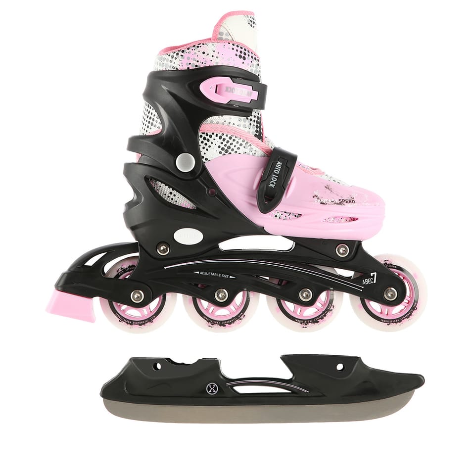 NH18331 4w1 RÓŻOWY ROZM.M 35-38) ŁYŻWOROLKI Z WYM. PŁOZĄ HOKEJOWĄ NILS EXTREM