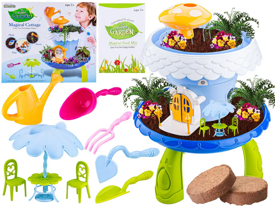 NIEBIESKI Zestaw Małego Ogrodnika UPRAWA Nawilżacz do roślin, Domek Dla Lalek, Doniczka Na Rośliny