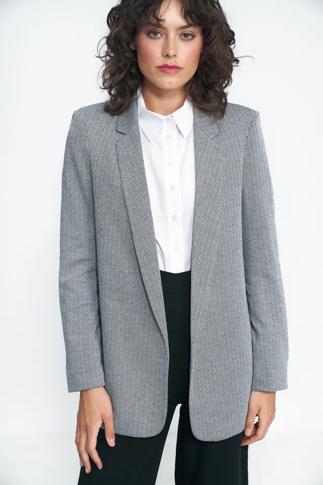 Niezapinana marynarka w czarną jodełkę - Z53 kolor czarny, rozmiar 40