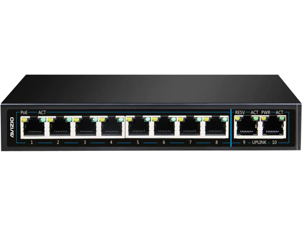Niezarządzalny przełącznik (switch) 10xRJ45 - 8 portów RJ45 PoE+ 1Gb/s + 2 porty RJ45 Uplink 1Gb/s budżet mocy 96W) AVIZI