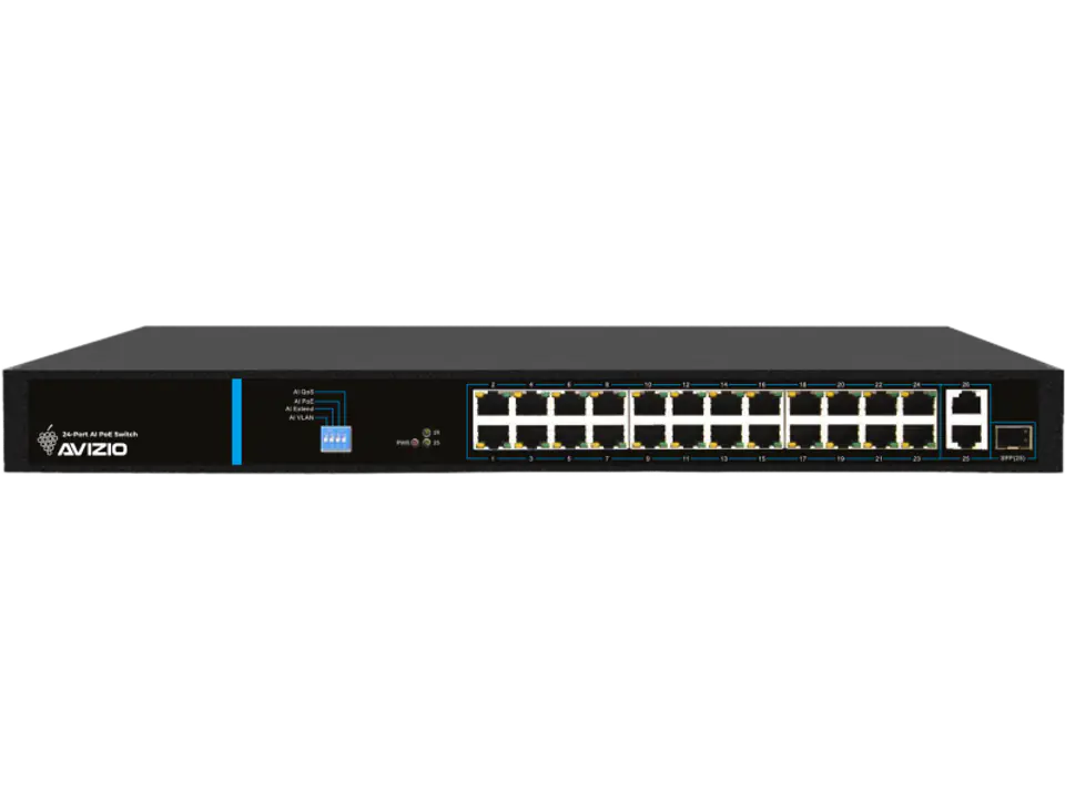 - AI EXTEND: Porty 1-24 obsługują transmisję do 250m
