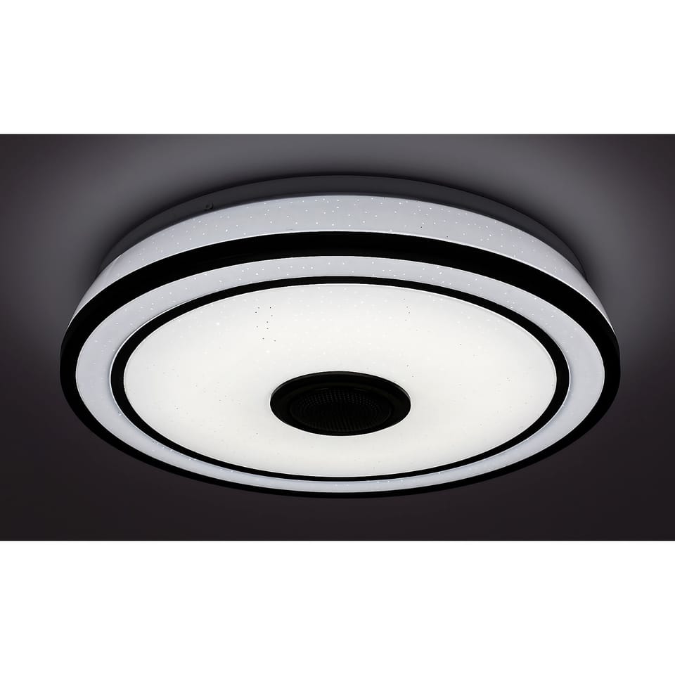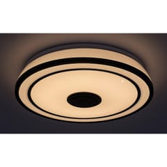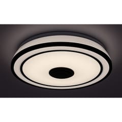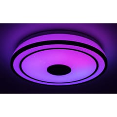 Specyfikacja- Kategoria produktu: lampa wewnętrzna- Typ: lampa sufitowa- Styl: nowoczesny- Pomieszczenie: pokój dzienny, pokój do pracy- Temperatura barwowa: można zmieniać- Strumień świetlny źródła światła: 1600lm- Moc źródła światła: 24W- Technologia LED: tak- Stopień ochrony: IP20- Kolor lampy: czarny- Materiał lampy: metal- Kolor klosza: biały- Materiał klosza: tworzywo sztuczne- Żywotność źródła światła: 50000 godzin- Klasa energetyczna źródła światła: G- Stosowane napięcie: 230V, 50Hz- Odległość od sufitu: 90.0 mm- Średnica: 395.0 mm- Waga: 1.32 kg- Barwa światła: 3000-6500 K- Pilot: tak- Zmiana barwy światła: tak- Numer pilota: 545- Ściemniacz: tak- Metoda ściemniania: z pilotem zdalnego sterowania- RGB: tak- Funkcja pamięci: tak- Funkcja timera: tak- Światło nocne: tak- Bluetooth: tak- Głośnik: tak- Gwiezdny efekt: tak- Klasa ochronności: I- Tryb regulacji temperatury barwowej: z pilotem zdalnego sterowania- Tryb czasowy: z pilotem zdalnego sterowania- Tryb pamięci: z wyłącznikiem/ z pilotem zdalnego sterowania