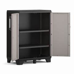 Niska szafa serii PRO doskonale sprawdzi się do przechowywania różnego rodzaju narzędzi, akcesoriów czy sprzętu ogrodowego.