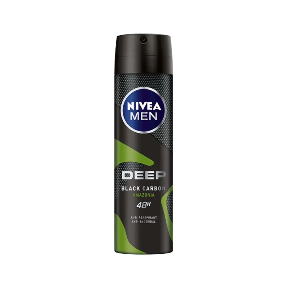NIVEA MEN Deep Amazonia z czarnym węglem w sprayu zapewnia długotrwałe uczucie suchej i czystej skóry. Formuła z aktywnym węglem zapewnia silna ochronę antybakteryjną. Skuteczna 48-godzinna ochrona antyperspirantu dla Twojej skóry. Długotrwały, męski i świeży zapach AMAZONIA. Łagodność dla skóry potwierdzona dermatologicznie.
