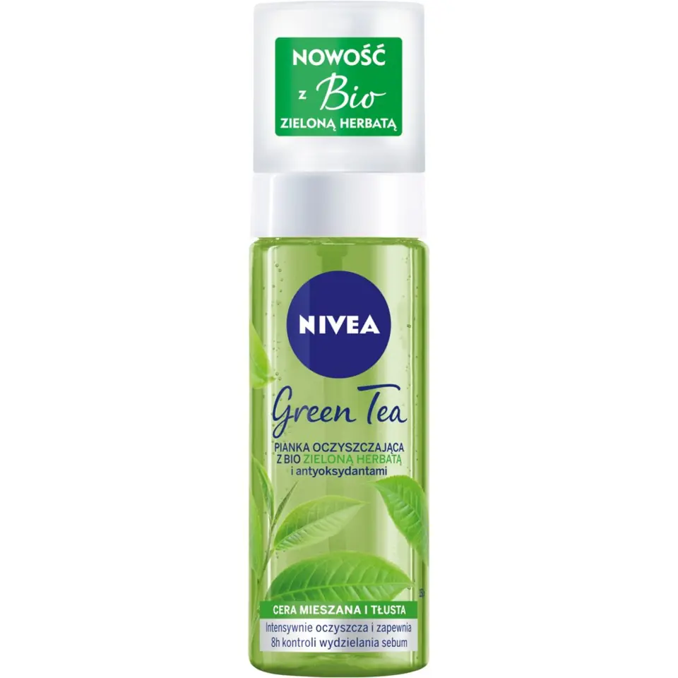 NIVEA GREEN TEA PIANKA OCZYSZCZAJĄCA z formułą wzbogaconą bio-zieloną herbatą oraz antyoksydantami do cery mieszanej i tłustej zapewnia intensywne oczyszczenie i 8h kontroli sebum! Twoje pory są odblokowane, twarz zmatowiona, a wszystko utrzymując naturalny poziom nawilżenia. Pianka oczyszczająca rekomendowana jest przez 94% kobiet.* Przy regularnym stosowaniu cera nabiera zdrowego i promiennego, przygotowując cerę. Przeznaczona do cery mieszanej i tłustej. *badanie na grupie 124 kobiet Zawartość wystarczy na około 190 aplikacji przy poprawnym stosowaniu produktu.