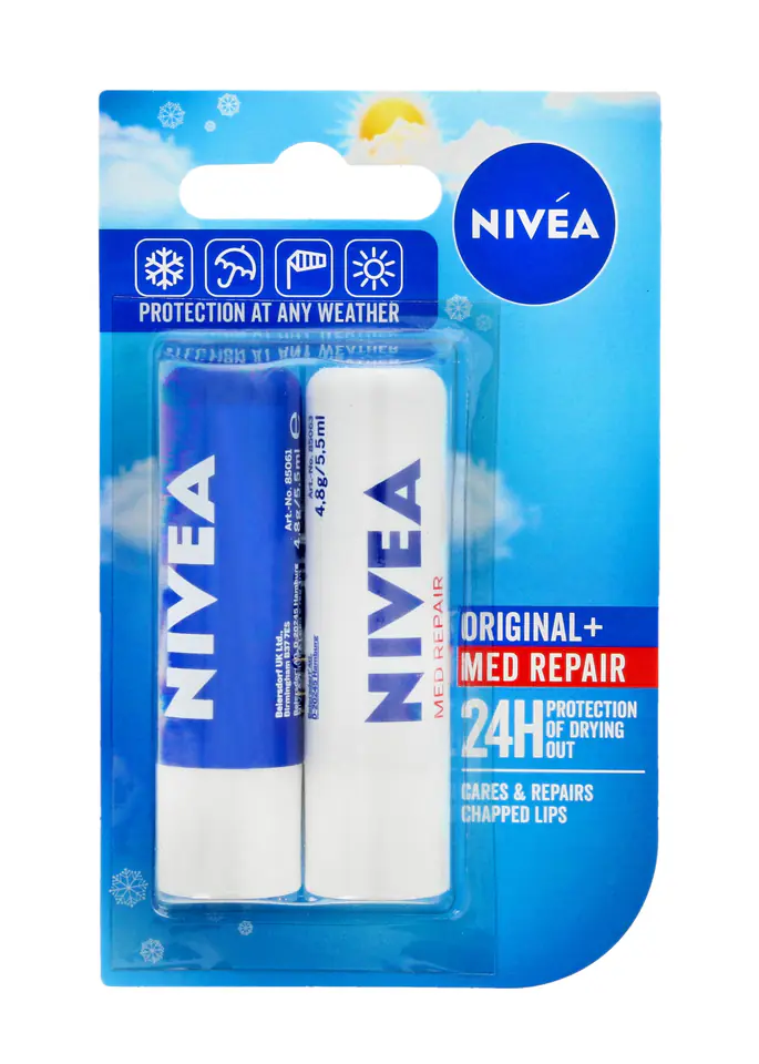 Zapewnij ukojenie swoim suchym i spierzchniętym ustom z pomadką NIVEA Med Repair! Pielęgnująca formuła z naturalnymi olejkami i witaminą E nawilża wargi oraz łagodzi uczucie szczypania i pieczenia w przypadku spierzchniętych ust. Natychmiast wtapia się w usta, wspomagając ich regenerację i dostarczając im 24h nawilżenia*. Regenerująca pomadka zawiera także filtr przeciwsłoneczny SPF 15, aby chronić Twoje usta przed szkodliwym wpływem promieni UV. Nałóż pomadkę ochronną Med Repair kiedy tylko Twoje usta potrzebują ukojenia, nawilżenia i pomocy w regeneracji! Pomadka do ust NIVEA Med Repair została stworzona z myślą o tym, byś mogła się cieszyć miękkimi, gładkimi ustami, z łatwością chroniąc je przed wysychaniem!