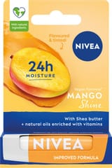 Doświadcz 24-godzinnego nawilżenia z pomadką do ust NIVEA Mango Shine! Naturalny aromat mango sprawi, że Twoje usta będą pachnieć pysznie, jednocześnie ciesząc się długotrwałym nawilżeniem i delikatnym połyskiem. Pomadka Mango Shine sprawia, że usta są niezwykle miękkie oraz zapewnia im ochronę przed wysychaniem. Wyjątkowa formuła z naturalnymi olejkami i masłem shea natychmiast wtapia się w Twoje usta, zapewniając im długie nawilżenie. Wegańska formuła zapewnia pełne nawilżenie ust niezależnie od pogody. NIVEA Mango Shine możesz mieć zawsze przy sobie, aby zapewnić swoim ustom doskonałą pielęgnację. NIVEA® - ponad 100 lat doświadczenia w pielęgnacji skóry oraz starannie wyselekcjonowane składniki z zachowaniem najwyższych standardów jakości.