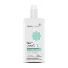 NIVELAZIONE DAILY COMFORT to hipoalergiczna emulsja do higieny intymnej stworzona dla kobiet ze skórą wrażliwą, skłonną do podrażnień, łącząca delikatne działanie z wysoką skutecznością i codziennym komfortem. Bezzapachowa, minimalistyczna formuła opiera się na ektoinie, która regeneruje i łagodzi, kwasie mlekowym utrzymującym prawidłowe pH oraz ekstrakcie z bawełny zapewniającym nawilżenie i świeżość.