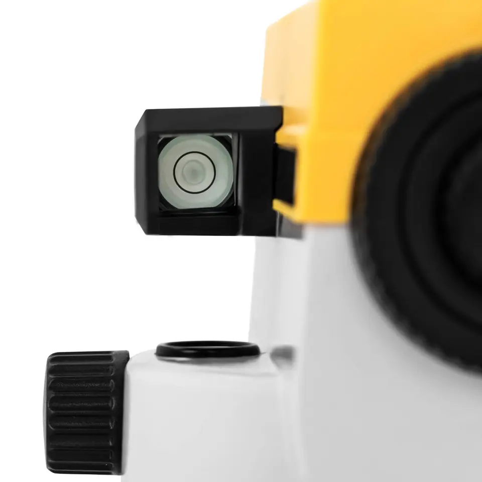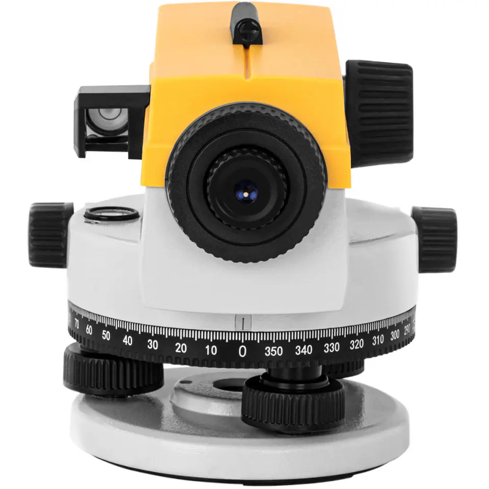 Dobra widoczność zagwarantowana jest dzięki obiektywowi o średnicy 34 mm. Obraz można przybliżyć 20-krotnie przy pomocy pokrętła. Minimalna ogniskowa to 0,3 m a odchylenie standardowe wynosi 2,5 mm. Powietrzny kompensator odpowiada za równowagę urządzenia. Pudełkowa libella z lustrem ułatwia i przyspiesza ustawienie właściwego poziomu niwelatora. Dołączone akcesoria znacznie ułatwiają pracę. Statyw posiada regulowaną wysokość, łata niwelacyjna ma 5-segmentową konstrukcję, po rozłożeniu jej długość to 5m. Front listwy posiada skalę wyrażoną w cm z podziałem geodezyjnym (E) natomiast tył posiada wartości wyrażone w mm.