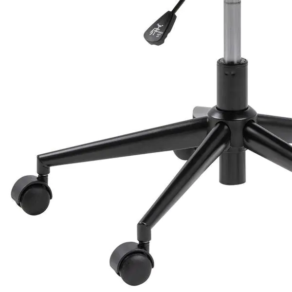 Siedzisko zostało wykonane z wytrzymałego poliestru, dzięki któremu krzesło jest odporne na przetarcia, zniszczenia, a także zabrudzenia. Ciemnoszary kolor tkaniny dodatkowo nadaje jej ciekawego wyglądu. Otrzymujesz zatem nie tylko wygodny mebel do pracy przy biurku, ale również produkt, który zaskakuje nowoczesnym designem. Nogi wykonane z solidnego metalu tworzą kształt pięciu gwiazdek.