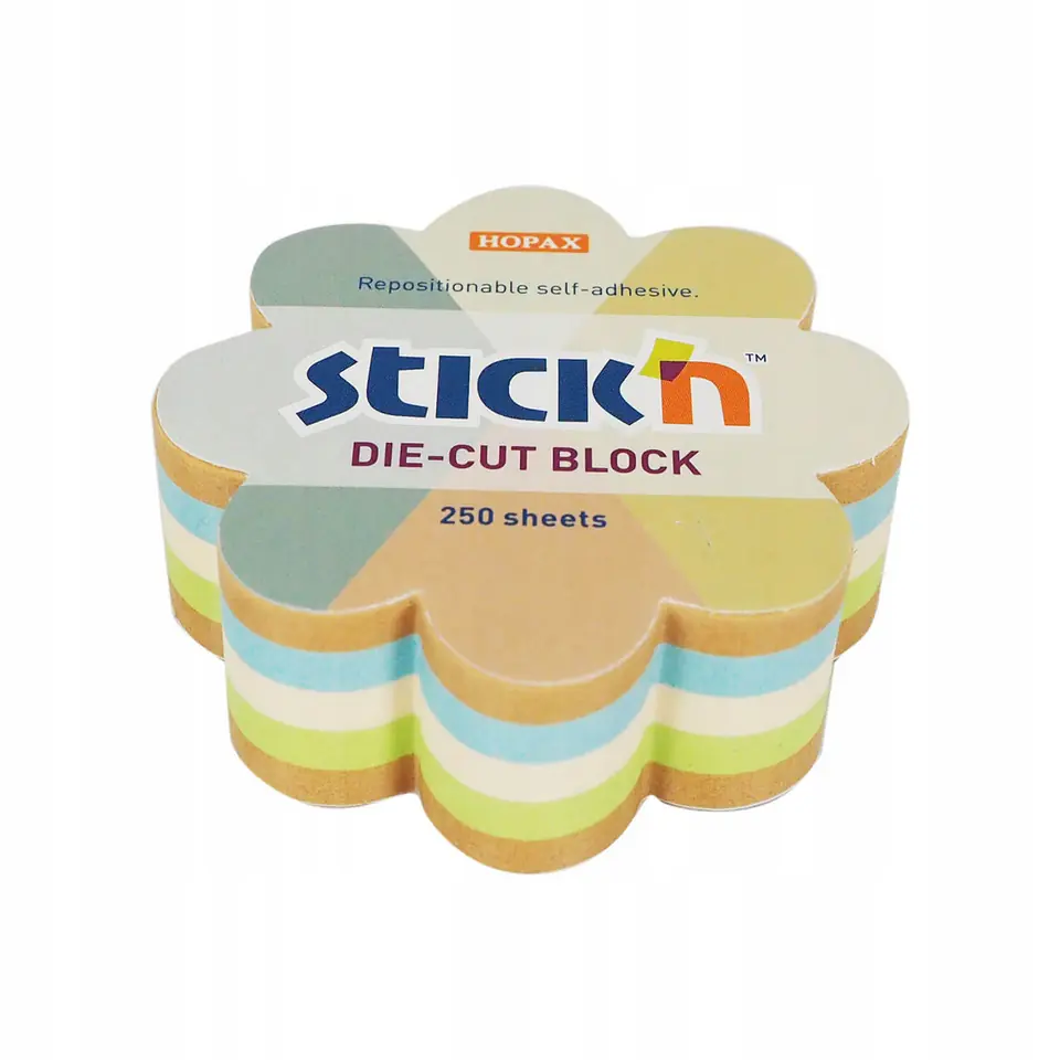 Notes samoprzylepny w ksztalcie kwiatka o wymiarach 67×67 mm, posiada nietypowy ksztalt, dzieki czemu ozdobi kazde notatnik.