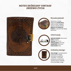 Notes Skórzany Vintage Retro 200 stron – Drzewo Życia - AH01