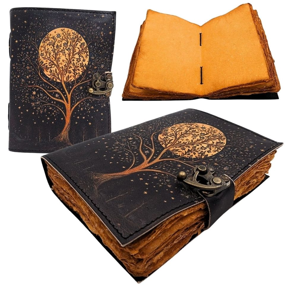 Notes Skórzany Vintage Retro Drzewo i Księżyc 200 stron – AH08