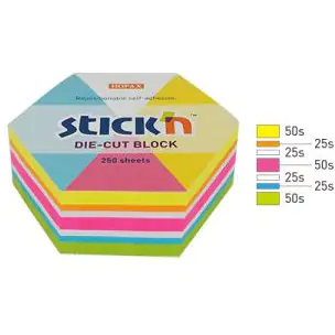KARTECZKI SAMOPRZYLEPNE 61x70mm SZEŚCIOK?T Bloczek 250 kartek STICK'N