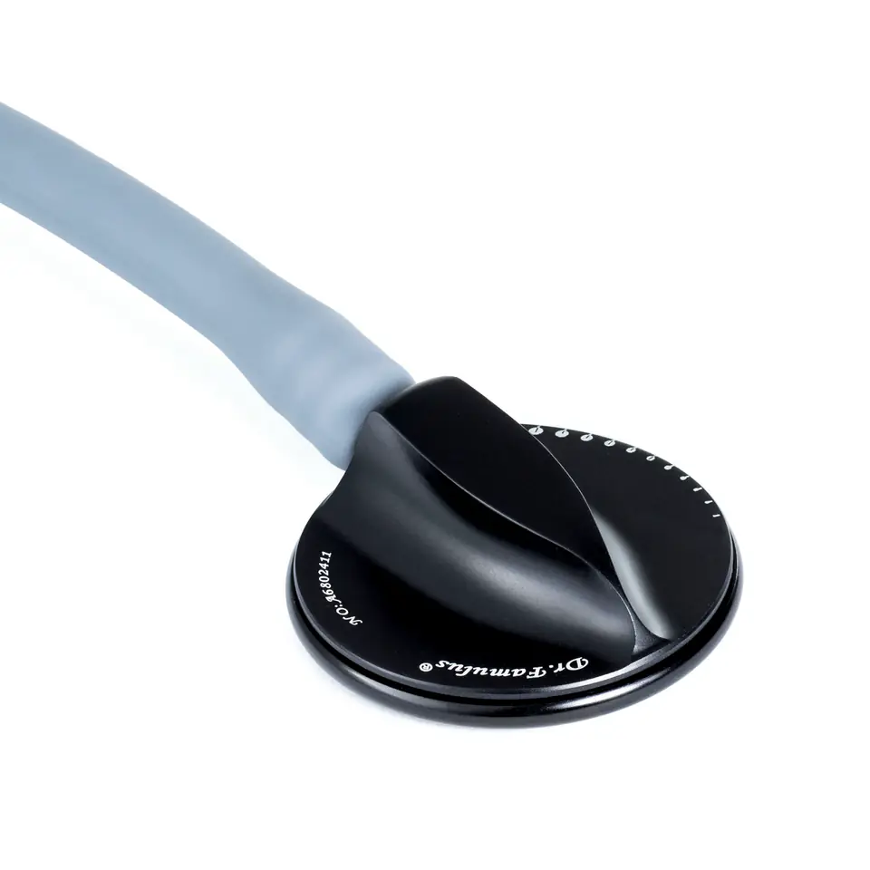 Dwutonowa membrana Pojedyncze światło przewodu Jednostronna głowica Technologia strojenia Fine Tune™ Obracając pierścień Fine Tune™ można precyzyjnie dostroić dźwięk. Dwutonowa membrana Lekka zmiana nacisku na głowicę umożliwia usłyszenie zarówno wysokich jak i niskich częstotliwości. Głowica wykonana z materiału kompozytowego. Głowica wykonana ze stopu miedzi i aluminium. Elastyczny przewód słuchowy wykonany z silikonu. Oliwki Ultra Comfort Oliwki izolują hałas zewnętrzny. Lirę przy oliwkach można zginać i dopasować do własnych potrzeb lub zaczepić na szyi. Stetoskop dostępny w 10 intensywnych kolorach. Fioletowy, pomarańczowy, błękitny, różowy, granatowy, zielony, jasny szary, winny, ciemny szary, czarny. W każdym opakowaniu ze stetoskopem Novama Expert znaleźć można dodatkowe dwie pary wymiennych oliwek (jedna para w większym rozmiarze/ jedna para w mniejszym rozmiarze) oraz pudełko do ich przechowywania. Stetoskop ma 86 cm długości i rozciąga się od 10 do 15 %. Głowica stetoskopu Novama Expert jest wykonana z złoconego stopu miedzi i aluminium.