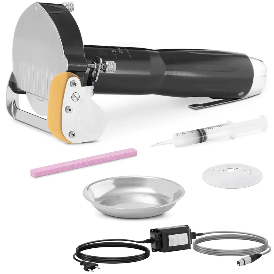 Elektryczny nóż do kebaba marki POTIS umożliwia pokrojenie grillowanego kurczaka, jagnięcinę, indyka lub cielęcinę na cienkie plasterki bez żadnego wysiłku. Dzięki dużej prędkości obrotowej jest idealny do intensywnego użytkowania w gastronomii. Urządzenie posiada regulowaną grubość plasterków w zakresie 0-10 mm. Dodatkowo jego konstrukcja jest bardzo kompaktowa i lekka. Dzięki wyprofilowanej powierzchni i ergonomicznemu kształtowi pewnie i wygodnie leży w dłoni. Ostrza wykonane ze stali nierdzewnej. Osłona noża minimalizuje ryzyko skaleczenia się i zwiększa bezpieczeństwo podczas cięcia. W celu automatycznego czyszczenia wystarczy umieścić głowicę sprzętu w pojemniku z ciepłą wodą i płynem do mycia naczyń. Następnie przycisnąć przełącznik dźwigni. Program uruchomi się teraz automatycznie na około 30 sekund. Proces należy powtórzyć z czystą, zimną wodą, aby usunąć pozostałości detergentu.