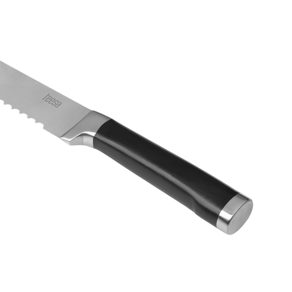 Nóż do pieczywa Zaczynasz dzień od przygotowania śniadania z chrupiących bułek, albo chleba? Nóż do pieczywa Teesa TSA0192 to akcesorium niezbędne w Twojej kuchni. Ząbkowane ostrze, w połączeniu z optymalnie wyważonym ciężarem i ergonomiczną rękojeścią, sprawiają, że nóż doskonale sprawdzi się zarówno przy krojeniu świeżych i miękkich bułeczek, jak też bardziej twardego i czerstwego pieczywa.