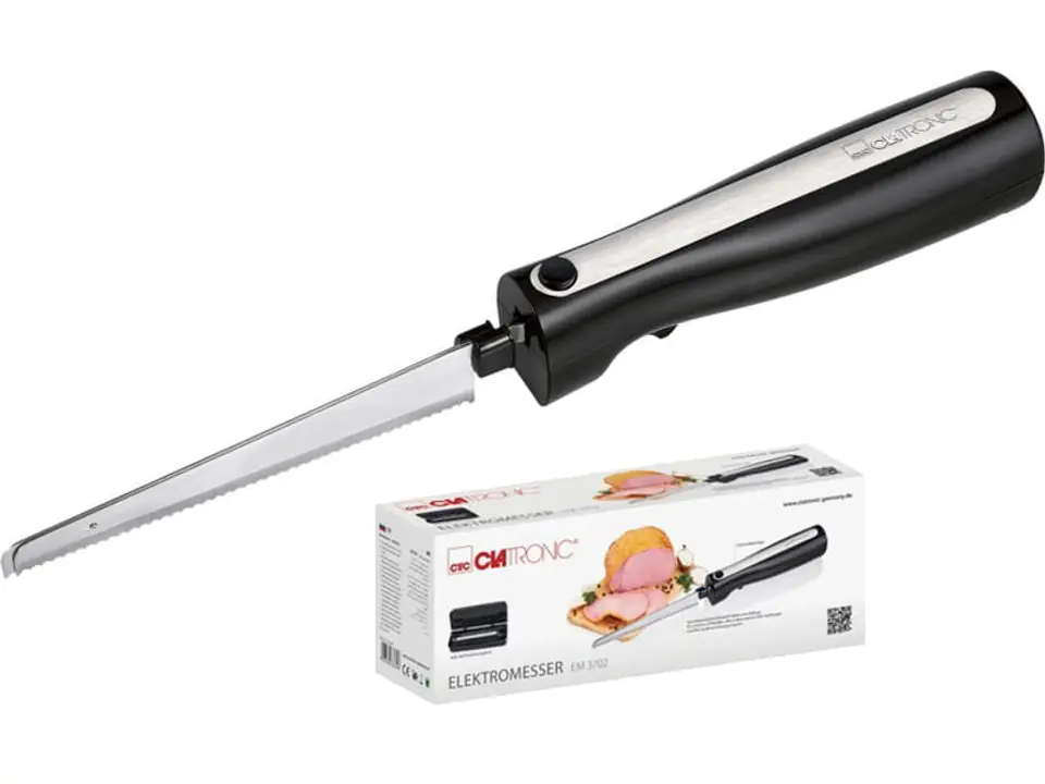 Nóż elektryczny z mocnym silnikiem 120W. Wkładka ze stali nierdzewnej. Niski poziom hałasu i niski poziom wibracji. Nóż zaopatrzony w wyłącznik bezpieczeństwa oraz przycisk wysuwania ostrza. W zestawie pojemnik do przechowywania