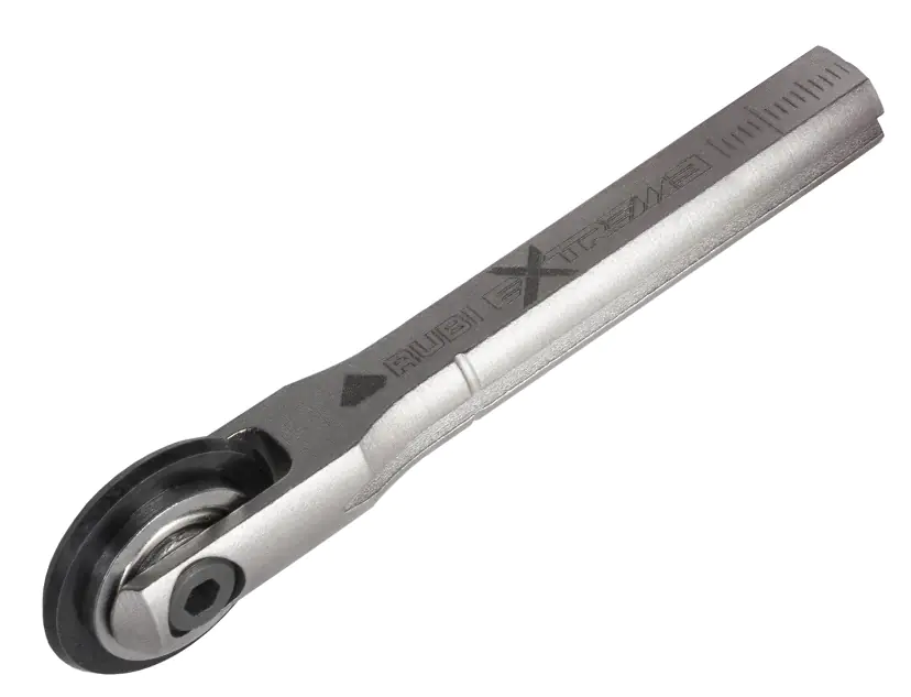 Kółka w nożach tnących EXTREME są wykonane z węglika spiekanego o najwyższej jakości, specjalnie powlekanego warstwą węglika tytanu. Dzięki temu kółka tnące RUBI EXTREME są bardziej odporne na ścieranie powierzchniowe podczas użytkowania. Dodatkowo kółka tnące EXTREME są zamontowane na łożysku, które całkowicie eliminuje tarcie pomiędzy kółkiem, a osią, na której jest osadzone. To połączenie przekłada się na odczuwalnie najpłynniejszą pracę kółka tnącego EXTREME, zdecydowanie lepszą od pozostałych, a żywotność noża wynosi 300% w porównaniu do noży tnących serii SILVER (w tych samych warunkach użytkowania).