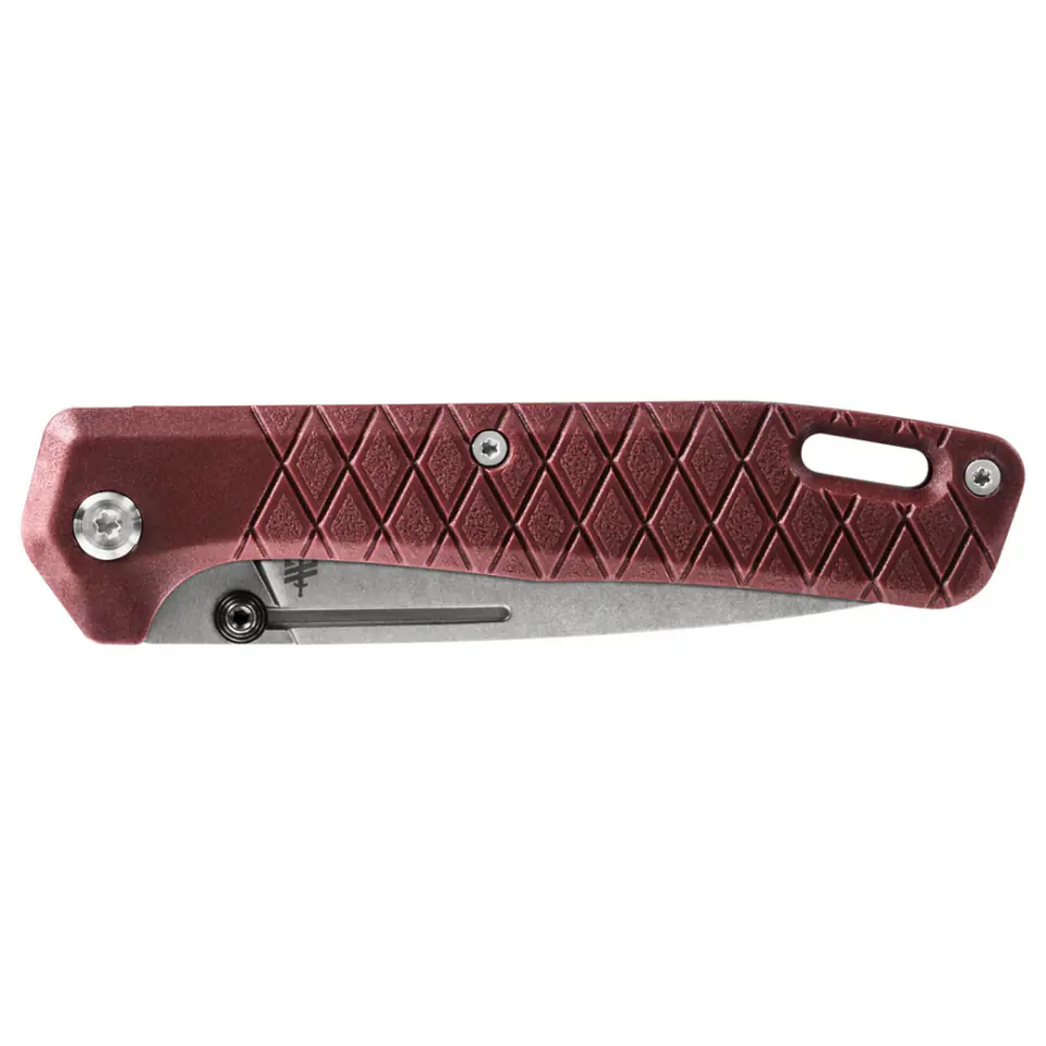 Rękojeść kieszonkowego noża Zilch ma teksturowaną powierzchnię w formie rombów, grzbiet natomiast unikatowy design. Z boku zamocowano klips, dzięki któremu nóż w kieszeni jest zawsze na swoim miejscu, nie uwiera i nie zmienia pozycji. W rękojeści nie zabrakło też otworu na smyczkę z paracordu czy repsznura.