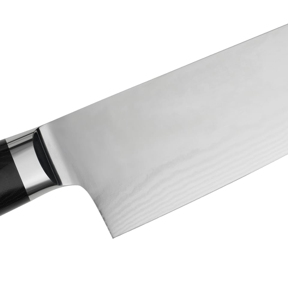 Nóż szefa kuchni ze stali damasceńskiej 33,5 cm Co wspólnego mają ze sobą nóż szefa kuchni Teesa oraz średniowieczny miecz japoński? W obu do wykonania ostrza wykorzystano stal damasceńską. Jej cechą charakterystyczną jest wielowarstwowość, która sprawia, że ostrze jest niezwykle ostre oraz bardzo trwałe. Wybierając nóż ze stali damasceńskiej masz pewność, że posłuży Ci on przez wiele lat.