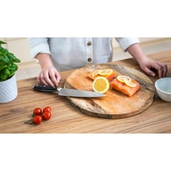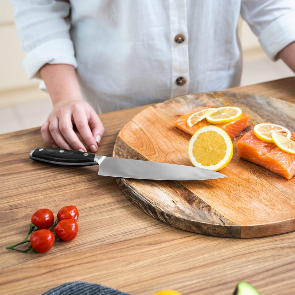 Nóż szefa kuchni Teesa został wykonany z wysokiej jakości stali nierdzewnej, dzięki czemu wyróżnia się dużą wytrzymałością, ostrością oraz odpornością na korozję. Możesz mieć pewność, że to akcesorium będzie służyło Ci przez lata. Zwróć też uwagę na ergonomiczną rękojeść, która sprawia, że nóż jest bardzo wygodny w użyciu i pewnie leży w dłoni.