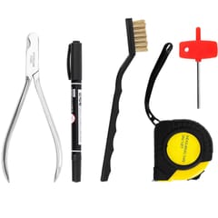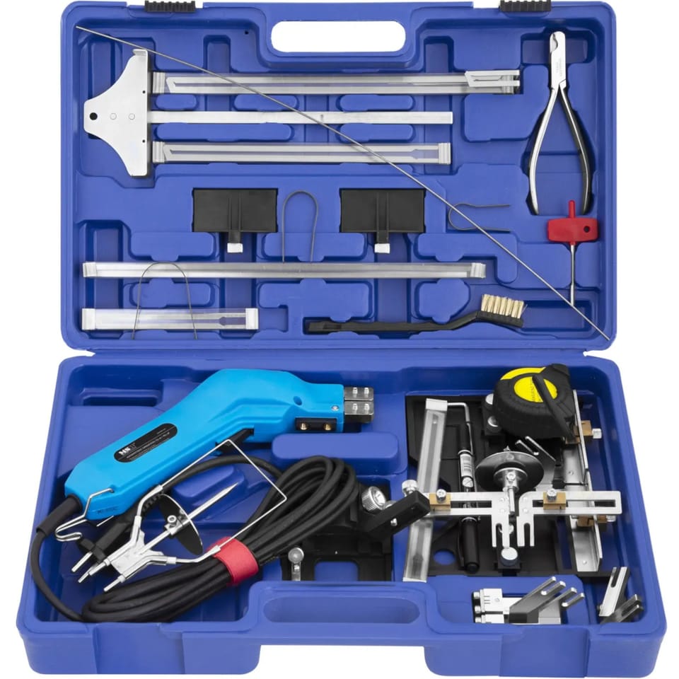 - - Nóż do cięcia styropianu w zestawie z różnymi ostrzami, regulowaną prowadnicą, markerem, szczotką i kluczem imbusowym, a wszystko schowane w praktycznej walizce transportowej.