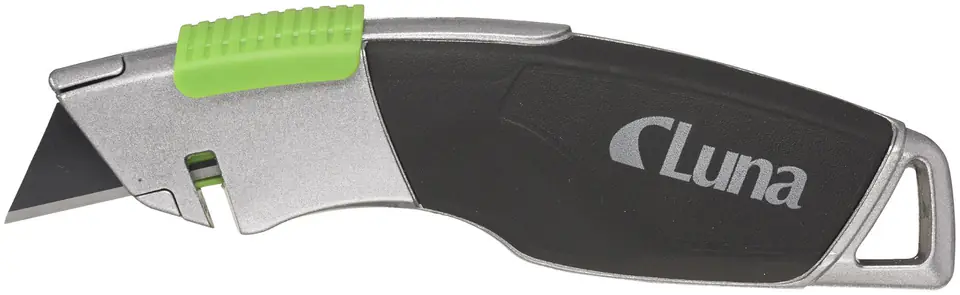 Nóż uniwersalny, model lekki, bezpieczny, ze sprężynowym powrotem ostrza. Obudowa ze stopu aluminium, z detalami z gumy zapewniającymi wygodę użytkowania. Posiada ostre wybranie do szybkiego ucinania taśmy/sznura. Przydatny do łatwiejszych prac. Dostarczany z ostrzem SK2H. Możliwość podłączenia zebezpieczenia przed upadkiem narzędzia.