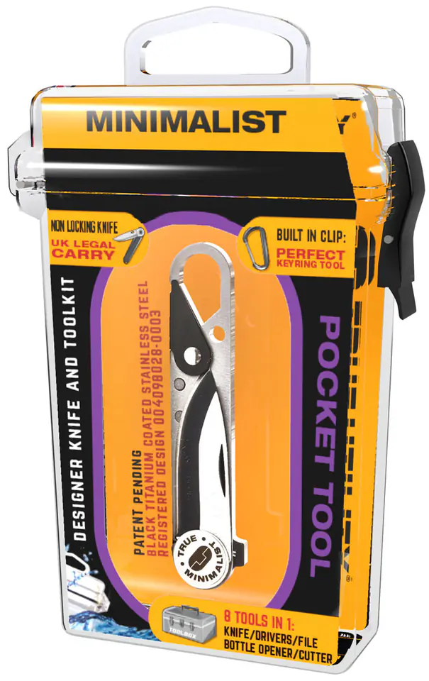 MiniMalist, brytyjskiej marki True Utility, to małe narzędzie wielofunkcyjne z 7 funkcjami. Idealne jako podręczny multitool, który można zawsze mieć przy sobie np. jako element breloka do kluczy. Będzie użyteczny , gdy potrzebujemy na szybko coś odkręcić, zacisnąć, przeciąć czy otworzyć butelkę.