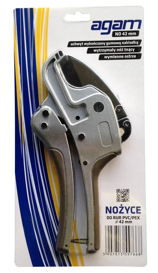 Nożyce do precyzyjnego cięcia rur z tworzyw sztucznych PP, PE, PEX, PB i PVDF.