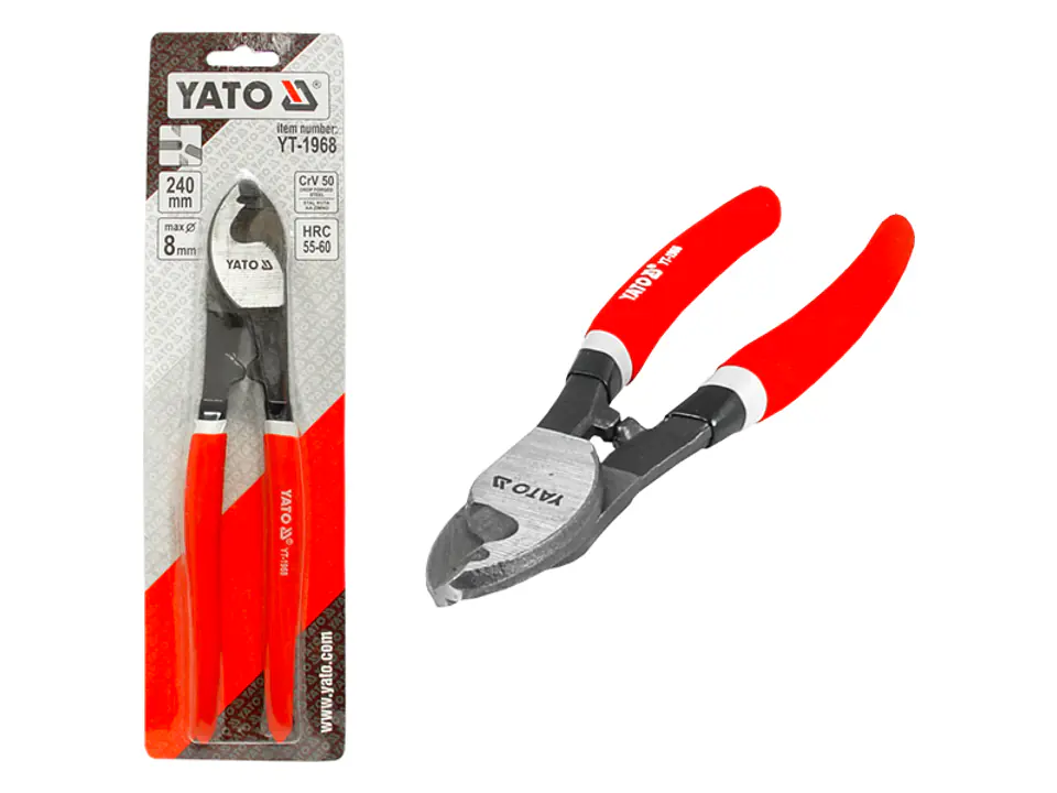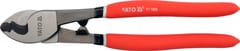 Nożyce do kabli 150mm YT-1966 YATOProfesjonalne szczypce do cięcia przewodów marki Yato. Wysokiej jakości narzędzie do użytku profesjonalnego w przemyśle i rzemiośle. Przeznaczone do profesjonalnego użytkowania w przemyśle, rzemiośle, budownictwie. Do skutecznego, precyzyjnego, przecinania przewodów aluminiowych i miedzianych do 6mm. Szczególnie przydatne przy tradycyjnych pracach instalatorskich i montażowych. Odkuwane na zimno ze stali cr-v 50. Szczęki szlifowane i hartowane indukcyjnie do 55-60 HRC. Rękojeści zabezpieczone trójwarstwową osłoną ze specjalnej antypoślizgowej pianki technicznej