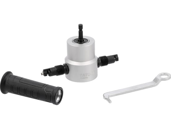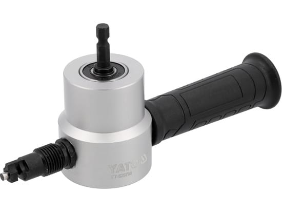 Nożyce do blachy przeznaczone do pracy z wkrętarką i wiertarką. Zapewniają wydajne, sprawne przecinanie blachy dachowej, nierdzewnej, ryflowanej z aluminium i stopów metali miękkich.