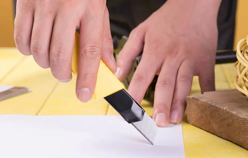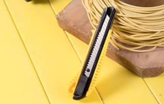 Oryginalny, w pełni profesjonalny i funkcjonalny nożyk z łamanym ostrzem marki Deli. Wykonany z wysokiej jakości tworzywa sztucznego. Ergonomiczny kształt zapewnia pewny chwyt i wygodę użytkowania, a solidny, plastikowy przycisk umożliwia zmianę długości ostrza.