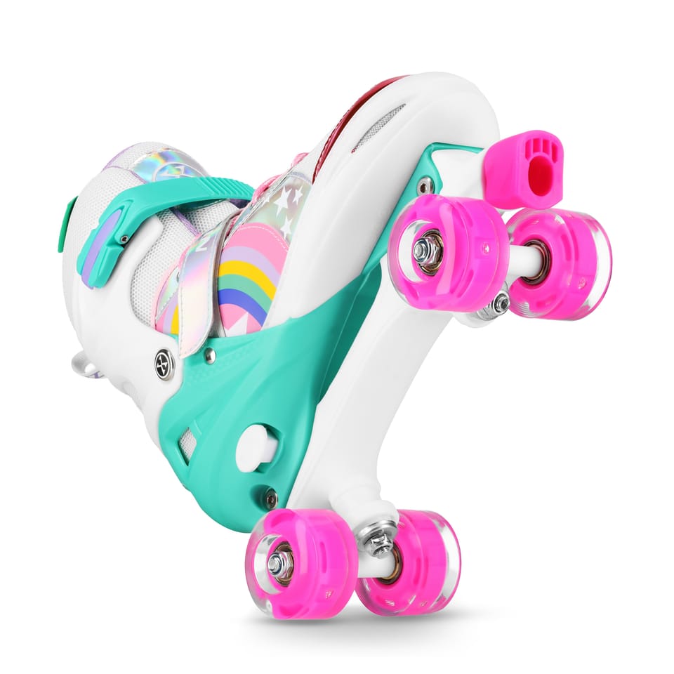 Doskonały wybór dla młodych entuzjastów jazdyWrotki NILS Extreme NQ0187 to propozycja zaprojektowana z myślą o dzieciach i młodzieży, które rozpoczynają swoją przygodę z jazdą na wrotkach lub pragną ją kontynuować w stylowy i bezpieczny sposób. Model ten łączy atrakcyjny design z funkcjonalnością i wysoką jakością wykonania, dzięki czemu stanowi idealny wybór zarówno do rekreacyjnych przejażdżek po parku, jak i do nauki jazdy na poziomie podstawowym i średniozaawansowanym.Stabilność i bezpieczeństwo na pierwszym miejscuKonstrukcja wrotek NQ0187 została wykonana z trwałych materiałów — połączenia tworzywa PP i PE w części buta oraz PP w podstawie — co gwarantuje odpowiednią sztywność i trwałość. System zapinania składający się z klamry, sznurówek i paska na rzep zapewnia doskonałe dopasowanie do stopy użytkownika, minimalizując ryzyko kontuzji i przesuwania się stopy w trakcie jazdy. Wewnętrzna długość buta w zależności od rozmiaru dopasowana jest do dziecięcej stopy, co wpływa na komfort noszenia.Komfort jazdy i atrakcyjne efekty wizualneWrotki wyposażone są w łożyska klasy ABEC-7, które zapewniają płynną i dynamiczną jazdę nawet na dłuższych dystansach. Koła wykonane z wysokiej jakości PU zostały dodatkowo wzbogacone o efektowne diody LED, które świecą podczas ruchu, co nie tylko zwiększa atrakcyjność wizualną produktu, ale także poprawia widoczność użytkownika w warunkach słabego oświetlenia.Rośnie razem z dzieckiemDzięki regulowanemu rozmiarowi, model NQ0187 "rośnie" razem z użytkownikiem. Trzy dostępne zakresy (S, M i L) umożliwiają dopasowanie rozmiaru w szerokim zakresie, co czyni ten model wyjątkowo praktycznym rozwiązaniem dla dzieci i młodzieży. Taka funkcjonalność to oszczędność i pewność, że wrotki posłużą na dłużej. Specyfikacja: Materiał buta: PP + PE Płoza: PP Łożyska: ABEC-7 Kółka: PU z diodami LED Rozmiar kółek: 54 × 32 mm Rozmiary dostępne: S (31–34) – długość wewnętrzna: 18–20 cm M (35–38) – długość wewnętrzna: 21–24 cm L (39–41) – długość wewnętrzna: 25–27 cm System zapięcia: Klamra + sznurówki + pasek na rzep Maksymalna waga użytkownika: 50 kg Uwagi: Nie przeznaczona do użytku komercyjnego Gwarancja 24 miesiące Importer: Abisal Sp. z o.o.| Polska | 41-807 Zabrze | ul. Pyskowicka 17 | e-mail: abisal@abisal.plAbisal Sp. z o.o. deklaruje, iż produkty sprzedawane przez firmę są bezpieczne i spełniają wymagania zawarte w Ustawie o ogólnym bezpieczeństwie produktów z dnia 12 grudnia 2003r. (Dz.U. z dnia 31 grudnia 2003r.)