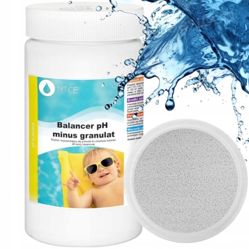 Produktów biobójczych należy używać z zachowaniem środków ostrożności.Przed każdym użyciem należy przeczytać etykietę i informacje dotyczące produktu.NAJWYŻSZEJ JAKOŚCICHEMIA BASENOWACHLOR DO BASENU, JACUZZI, SPANTCE CHLOROXBALANCER PH MINUS 1 KGGRANULATOBNIŻA WARTOŚĆ PH PRODUKT POLSKI Preparat proszkowy do obniżania wartości pH w wodzie basenowej. Rozpuszczony w wodzie nadaje się zarówno do dozowania ręcznego jak i automatycznego w urządzeniach pomiarowo dozujących.PH- Minus – najważniejsze informacje: Szybko rozpuszcza się w wodzie basenowej. Skutecznie obniża wartość pH. Pomaga utrzymać optymalne parametry wody basenowej. Łatwo go używać.Dlaczego POWINIENEŚ/POWINNAŚ sięgnąć po Gamix pH- Minus Pozwala utrzymać odpowiedni poziom pH wody basenowej. Zwiększa skuteczność dezynfekcji wody basenowej. BEZPIECZNY DLA DZIECIJest to profesjonalny środek chemiczny i przy stosowaniu zgodnym z instrukcją zawartą na opakowaniu jest całkowicie bezpieczny dla kąpiących się osób DLACZEGO WŁAŚNIE TEN PRODUKTłatwe dozowanieszybkie działanieobniża pH wodybardzo wydajnydo wszystkich typów basenuCzym jest Gamix pH- MinusGamix pH- Minus to szybko rozpuszczający się granulat, który jest przeznaczony do obniżania wartości pH w wodzie basenowej.Utrzymanie właściwego pH w wodzie basenowej (7,0-7,6) sprawia, że dezynfekcja jest skuteczniejsza, a komfort kąpiących maksymalny.NTCE pH- Minus – wskazówki dotyczące użytkowania:Rozpuść odpowiednią ilość preparatu w pojemniku z wodą.Przy włączonej filtracji wlej roztwór bezpośrednio do basenu.Odczekaj cykl filtracyjny (pojemność basenu dzielona przez wydajność pompy).Wykonaj pomiar wartości pH wody.Jeśli wartość pH nadal będzie niewłaściwa, powtórz dozowanie, zmniejszając dawkę o połowę. Idealna wartość odczynu pH wody basenowej powinna mieścić się w zakresie 7,0-7,6.Uwaga! Aby uniknąć niepożądanych efektów, należy przynajmniej raz w tygodniu sprawdzać wartość pH wody i odpowiednio ją regulować.Bardzo ważną częścią utrzymywania wysokiej jakości wody w basenie są korekta pH.Współczynnik pH wskazuje jaki odczyn ma woda: kwaśny, obojętny czy zasadowy. Do sprawdzenia tej wartości używany jest miernik fotometryczny. Wartość pH wskazana podczas pomiaru ma decydujący wpływ na wszystkie pozostałe zabiegi podejmowane w celu zapewnienia bezpieczeństwa i komfortu użytkowania basenu.Utrzymanie właściwej wartości pH jest najważniejszym zadaniem w pielęgnacji wody basenowej. Wartość ta ma decydujący wpływ na pozostałe zabiegi zmierzające do utrzymania wysokiej jakości wody w basenie.Sposób użycia:Preparat stosowany do obniżania wartości pH wody z odczynu alkalicznego do zakresu idealnego (pH =6,8 - 7,4). Balancer pH minus granulat 1,5 kg pozwala na obniżenie wartości pH o około 0,2 w 100 m3 wody basenowej.Potrzebną ilość produktu należy rozpuścić w wodzie i zadozować do obiegu w kilku dawkach. Twardość wody ma wpływ na wydajność produktu. Przy wodzie twardej potrzebna ilość dozowanego środka może wzrosnąć, a przy wodzie miękkiej zmaleć. ZALETY STOSOWANIA REGULATOR pH MINUS obniża poziom współczynnika pH w wodzie basenowej, z wartości alkalicznej (ponad 7,6) do poziomu idealnego (7,0-7,4),odporny granulat kwasowy, przez co można go długo składować,szczególnie nadający się do ręcznego dozowania (dla prywatnych basenów),nie zawiera chlorku, przez co nie powoduje korozji.bardzo ekonomiczne stosowanie !!! Zestaw zawiera, aż 1,5kg drobnego granulatu !służy do stosowania we wszystkich rodzajach basenów!Odczyn wody basenowej powinien wynosić 7-7,4 pHZarówno zbyt wysoki, jak i zbyt niski współczynnik pH wiążą się z negatywnymi konsekwencjami.Wysokie pH wody w basenie może skutkować: zmniejszeniem skuteczności działania środków do dezynfekcji basenuwytrącaniem się wapnia i związanym z tym mętnieniem wodyzatykaniem filtrów.Zbyt niska wartość pH powodować może natomiast: podrażnienia błon śluzowychkorodowanie metalowych elementów.Regulacja współczynnika pH wody basenowej jest możliwa poprzez zastosowanie odpowiednich preparatów, dostępnych w formie płynu lub granulatu. Oferujemy zarówno środki podnoszące, jak i obniżające współczynnik pH w wodzie.