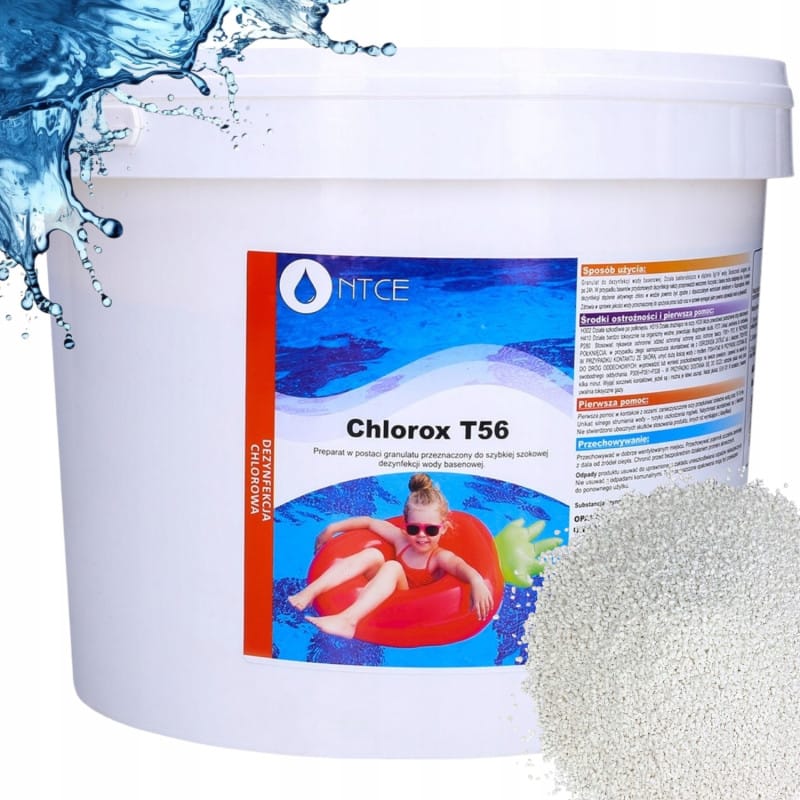 Produktów biobójczych należy używać z zachowaniem środków ostrożności.Przed każdym użyciem należy przeczytać etykietę i informacje dotyczące produktu. CHEMIA BASENOWAGOTIX - CHLOR SZOKCHLOR W GRANULACIEOPAKOWANIE 5 kg!!! PRODUKT POLSKI !!!Służy do natychmiastowej (szokowej) dezynfekcji wody basenowej. Przed przystąpieniem do chlorowania szokowego powinieneś doprowadzić odczyn pH wody do optymalnej wartości 7,0-7,4 by produkt ten działał skutecznie.W przypadku innej wartości należy zastosować korektor pH czyli: pH plus lub pH minus. Chlorowanie szokowe wody najlepiej przeprowadzić wieczorem - wtedy gdy nie ma już promieniowania UV pochodzącego od słońca. Działanie szybkiego chloru jest wtedy skuteczniejsze gdyż nie ma redukcji spowodowanej działaniem promieni UV. GRANULAT - 15w1 - JEDYNY TAKI NA ALLEGRO 1.Dezynfekcja wody – niszczenie bakterii, wirusów i glonów.2. Szybkie podniesienie poziomu chloru – tzw. szokowe chlorowanie, szczególnie po intensywnym użytkowaniu.3. Usuwanie mętności wody – chlor szok pomaga usunąć zanieczyszczenia organiczne.4. Eliminacja zapachu chloru – paradoksalnie, „zapach chloru” to chloraminy, które usuwa się właśnie chlorem szokowym.5. Zwalczanie glonów – silne dawki chloru niszczą powstałe kolonie glonów.6. Zabijanie drobnoustrojów po deszczu lub burzy – woda deszczowa może wprowadzać patogeny.7. Ochrona zdrowia kąpiących się – zapobieganie zakażeniom skórnym i układu pokarmowego.8 Zabezpieczenie basenu na noc / weekend – utrzymanie czystości, gdy nie ma filtracji.9 Rozkład resztek kosmetyków i potu – chlor utlenia zanieczyszczenia organiczne.10. Przywrócenie klarowności po intensywnym użytkowaniu – np. po imprezie w basenie.11 .Zrównoważenie działania innych środków chemicznych – np. wspomaganie koagulacji.12 Neutralizacja mocznika i amoniaku – produkty metabolizmu użytkowników.13.Redukcja chloramin – związków odpowiedzialnych za pieczenie oczu.14. Przygotowanie wody do sezonu – dezynfekcja przed pierwszym użyciem po zimie.15. Utrzymanie ogólnej higieny i estetyki wody – czysta, przejrzysta, bez zapachu. KIEDY STOSOWAĆ CHLOR SZOKPo napełnieniu basenu nową wodąPo intensywnym użytkowaniu (np. po imprezie, wielu kąpiących się)Po deszczu, burzy lub silnym wietrzeGdy woda staje się mętna lub zaczyna śmierdziećGdy pojawią się glonyCo 1–2 tygodnie profilaktyczniePo zimie – przy uruchamianiu basenuPo zastosowaniu środków glonobójczych Niszczy patogeny takie jak:Escherichia coliPseudomonas aeruginosaStaphylococcus aureusEnterococcus hiraeLegionella pneumophilaDokładne dawki i czasy potrzebne do uzyskania efektu biobójczego dla powyższych szczepów podane są na etykiecie produktu.Odpowiednią dawkę preparatu należy rozpuścić w wodzie i wlać bezpośrednio do basenu. Przestrzegamy przed wsypaniem granulatu do basenu - może to odbarwić wykładzinę w basenie.Chlorowanie szokowe można wykonywać regularnie nawet jeśli z wodą nie ma większych problemów. Będzie miało to wtedy charakter zapobiegawczy. Podniesienie dawki chloru raz na 2 tygodnie znacznie poprawi właściwości wody w basenie. Dezynfekcję należy przeprowadzać wieczorem.Wszelkie informacje oraz szczegółowy sposób użycia i dozowanie znajdziesz na opakowaniu.Dozowanie:• W przypadku pierwszego dozowania, stosuj 18 g preparatu Chlortix Szok na 1 m3 wody (efekt bakteriobójczy uzyskujemy po okresie 2 h).• Cyklicznie dozuj 1,10 g na 1 m3 lub dla wanien Jacuzzi 1,8 g na 1 m3 dwa razy dziennie.