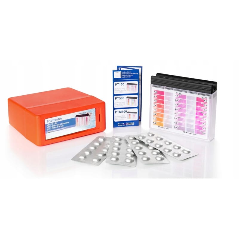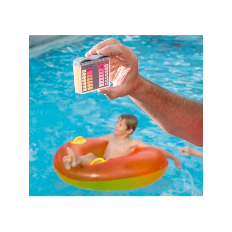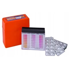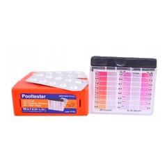 Produktów biobójczych należy używać z zachowaniem środków ostrożności.Przed każdym użyciem należy przeczytać etykietę i informacje dotyczące produktu. CHEMIA BASENOWANTCE POOLTESTERTESTER BASENOWYDO POMIARU CHLORU I PHTester służący do kontroli pH oraz wolnego chloru w wodzie. Kontrolowanie oraz korekta tych parametrów w wodzie jest bardzo ważna, wpływa na bezpieczeństwo użytkowników basenów, jacuzzi, zbiorników wodnych.Utrzymanie właściwej wartości pH jest najważniejszym zadaniem w pielęgnacji wody basenowej.Wartość ta ma decydujący wpływ na pozostałe zabiegi zmierzające do utrzymania wysokiej jakości wody w basenie.Test wody odbywa się w bardzo prosty sposób, wystarczy zdjąć pokrywkę i wypłukać pojemnik w wodzie basenowej.Obie części należy napełnić wodą, a następnie do komory pH wrzucić tabletki.Po zabarwieniu się wody, należy porównać kolor ze skalą barw i odczytać odczyn pH na lewej oraz zawartość wolnego chloru w mg/l na prawej stronie.Tabletki CL i pH: szybko rozpuszczalne w wodzie, zabarwiają wodę w testerze w zależności od stężeniaSzybka i prosta kontrola parametrów wodyBezpieczny poziom Cl: 1mg/lBezpieczny poziom pH: 7.2 - 7.4W SKŁAD ZESTAWU WCHODZI:pojemnik z osobnymi komorami do pomiaru pH i Cl30 tabletek DPD 130 tabletek Phenol Redinstrukcja obsługiWażne wskazówki:Dotknięcie tabletek wskaźnikowych palcami prowadzi do powstania błędów pomiarowych.Odczytu wyników pomiaru dokonywać należy bezpośrednio po rozpuszczeniu się tabletek wskaźnikowych w próbce wody.Po każdym pomiarze należy celem uniknięcia błędów wywołanych resztkami próbek gruntownie przepłukać wodą komory tester-a oraz pokrywę zamykającą.Wartości pH poniżej 6,8 wywołują zawsze zabarwienie na żółto.Wartości pH powyżej 8,2 wywołują zawsze zabarwienie na czerwono.Tabletki wskaźnikowe przeznaczone są wyłącznie do analiz chemicznych, nie wolno ich stosować do innych celów.Zapobiegać styczności dzieci z tabletkami wskaźnikowymi.Sposób użycia:1. Zdjąć pokrywę zabezpieczającą komory testera.2. Komory testera przepłukać badaną wodą.3. Komory napełnić po brzegi próbką wody.4. Aby przeprowadzić pomiar pH: wprowadzić bezpośrednio do odpowiedniej komory jedną tabletkę Phenol Red5. Założyć pokrywę zabezpieczającą komorę testera.6. Aby przeprowadzić pomiar wolnego chloru: wprowadzić bezpośrednio do odpowiedniej komory jedną tabletkę DPD7. Założyć pokrywę zabezpieczającą komorę testera.8. Wstrząsając testerem wymieszać próbkę wody tak aby tabletki rozpuściły się całkowicie.9. Odczytać wartość pomiaru ze skali. Tester należy trzymać pod światło.NIEBIESKA WODABASENCHEMIA DO BASENUKOD PRODUKTU: 73602