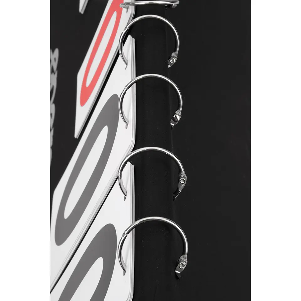 Wygodny w obsłudze dzięki obrotowym plastikowym tabliczkom, które z łatwością można obracać na metalowych obręczach.