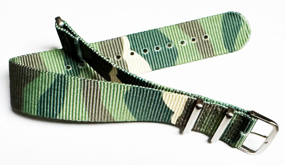 Solidne materiałowe paski do zegarka. Kolorystyka w wojskowym klimacie. W opisie zdjęcia real produktu.