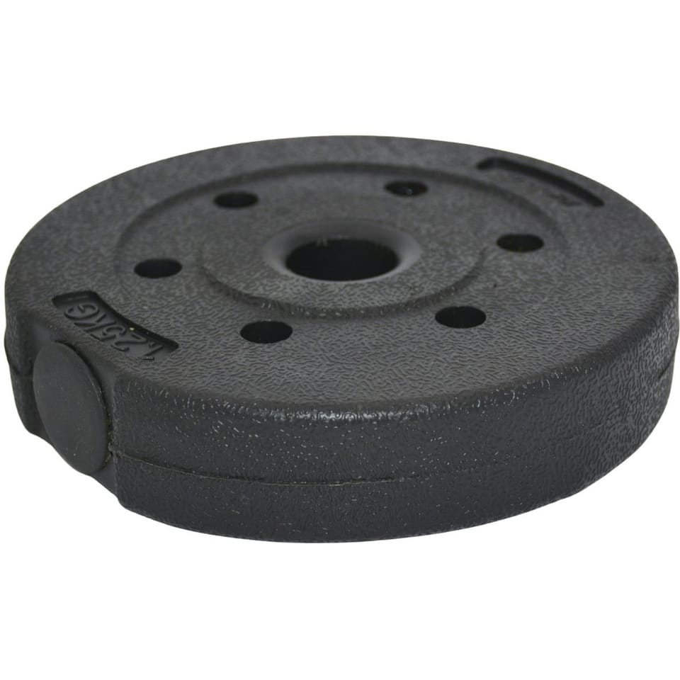 Parametry:- Średnica otworu ok.: 29 mm Wymiary talerza ok: 17 x 3,5 cm (śr. x gr.)Waga produktu ok.: 1,25 kgKolor: czarny Materiał: beton powlekany PEMarka: ENERO FITOpakowanie: 18 x 4,5 x 19 cm (śr. x gr.)W zestawie: 1 szt.
