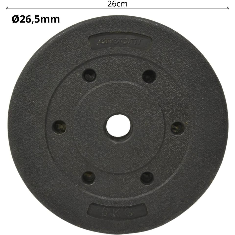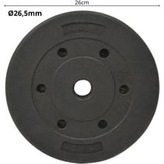 Parametry:- Wymiary otworu w kształcie klepsydry ok.: 26,5 mm (śr. w najwęższym miejscu)/ śr. w najszerszym miejscu 30 mm (pasuje do gryfów o średnicy 25,4 -26,5 mm) Wymiary talerza ok.: 26 x 4,5 cm (śr. x gr.) Waga netto ok.: 5 kgWaga brutto ok.: 5,5 kgKolor: czarnyMateriał: beton powlekany PEMarka: ENERO FITOpakowanie: 28 x 28 x 5 cm (szer. x wys. x dł.)W zestawie: 1 szt.
