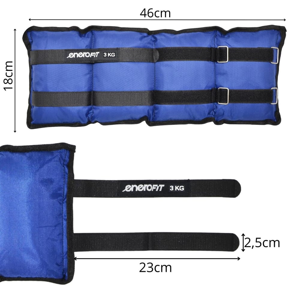 Parametry:- Wymiary ok: 46 x 18 x 3 cm (dł. x szer. x gr.)Wymiar całkowity rzepa ok.: 66 x 2,5 cm (dł. x szer.)Długość rzepa do regulacji szerokości: 24 cmMateriał: terylen, opiłki metalu, rzep, stalowa klamraIlość klamer do regulacji na jednym obciążeniu: 2 szt.Waga netto ok.: 6,062 kg Waga brutto ok.: 6,070 kgWymiary opakowania (folia): 46 x 19 x 6 cm (wys. x szer. x gr.)Kolor: niebieskiZestaw zawiera 2 obciążenia po ok. 3 kgMarka: ENERO FIT