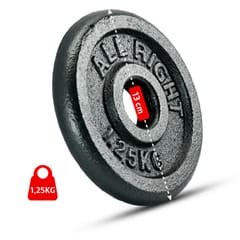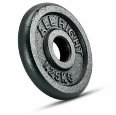 OBCIĄŻENIE ALLRIGHT CZARNE 1,25KG Obciążenie żeliwne na gryf marki Allright, w kolorze czarnym. Obciążenie żeliwne Allright idealnie sprawdza się w domowej oraz profesjonalnej siłowni. Wysokiej jakości odlew żeliwny z powłoką antykorozyjną gwarantują wieloletnią trwałość i zadowolenie z produktu. - Trwałe i solidnie wykonane obciążenie żeliwne w kolorze czarnym. - Idealne do treningu siłowo-wytrzymałościowego. - Umożliwia skompletowanie sztangi i/lub hantli. - Nadaje się też do ławek wyposażonych w przyrząd typu prasa do nóg i/lub wyciągu w tym butterfly, o odpowiedniej średnicy nasadki na obciążenia. SPECYFIKACJA:Pasuje na gryf Allright lub inny o średnicy max 28mmŚrednica talerza: 13cmGrubość talerza: 2cmŚrednica otworu w obciążeniu: 28,5mmTolerancja wagi +/- 5%