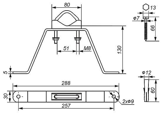 | Materiał: | Obejma - Stal ocynkowana ogniowo, Śruby / nakrętki / elementy złączne - Ocynk galwaniczny |