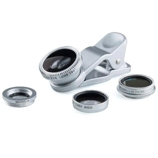 Wymienne soczewki 3w1 na telefon z klipsem SREBRNEZestaw zawiera: