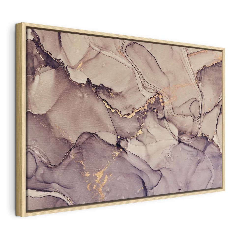 Obraz - Akwarelowa abstrakcja - pudroworóżowy marmur ze złotym akcentem rozmiar 60x40, wykończenie W ramie drewnianej naturalnej
