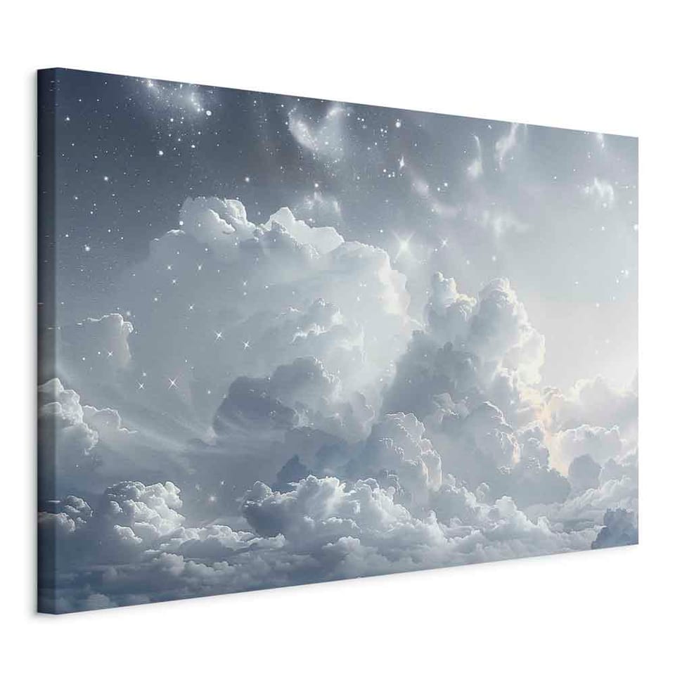 Obraz - Astralny spokój: Gwiazdy rozsypane nad delikatnymi chmurami rozmiar 30x20, wykończenie Na płótnie włoskim