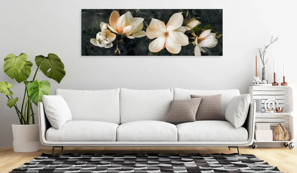 Obraz - Awangardowa magnolia (1-częściowy) wąski pomarańczowy rozmiar 135x45, wykończenie Premium Print
