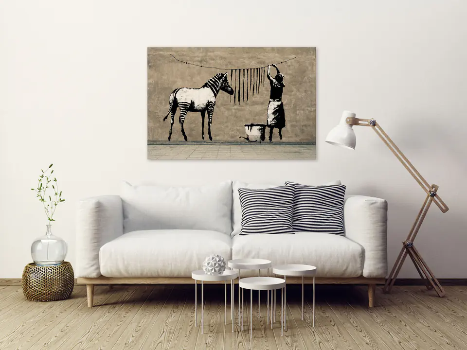 Obraz - Banksy: Pranie zebry na betonie (1-częściowy) szeroki rozmiar 120x80, wykończenie Premium Print